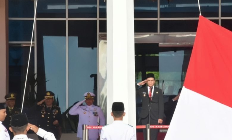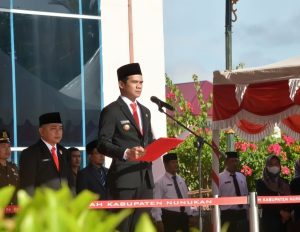 Bupati Nunukan H. Irwan Sabri selaku inspektur upacara, membacakan secara langsung sambutan Menteri Pendidikan Dasar dan Menengah Republik Indonesa, Abdul Mu’ti.