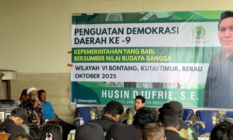 TITIKINFO.COM, BERAU – Anggota DPRD Provinsi Kalimantan Timur, Husin Djufrie, menggelar kegiatan Sosialisasi Penguatan Demokrasi Daerah ke-9 di Kampung Kasai, Kecamatan Pulau Derawan, Senin (6/10/2025).